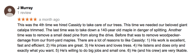 Owner Tree climber Cassidy Lancelin has climbed from west to east coast and brings 11 year Exp. in the industry to every job. My crew is documented safety trained for tree cutting operations and always required wear all (PPE) personal protective equipment on the job.